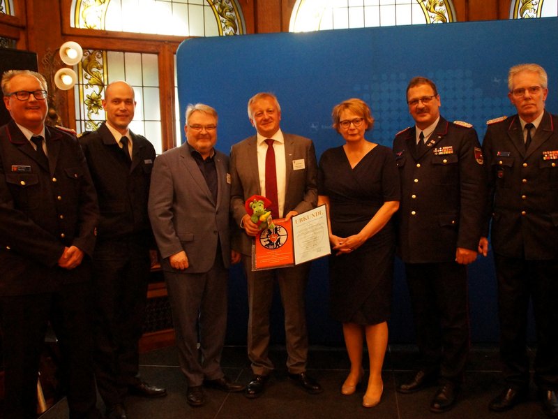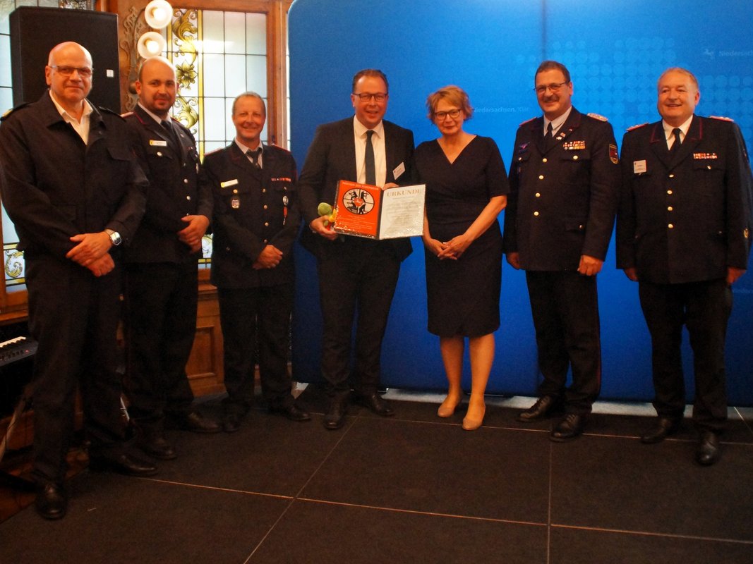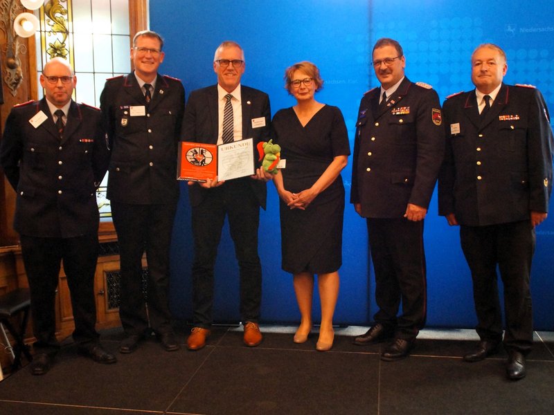 Hannover. Bereits zum 24. Mal konnte die begehrte Landes-Auszeichnung der Plakette „Partner der Feuerwehr“ am Dienstag, den 19. August 2025, im Gästehaus der Niedersächsischen Landesregierung in Hannover durch die Landesregierung und dem Landesfeuerwehrverband Niedersachsen (LFV-NDS) verliehen werden.