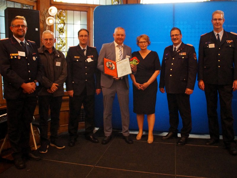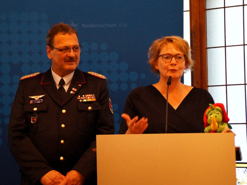 Feuerwehrministerin Behrens freute sich in ihrer Ansprache darüber, „dass die Angehörigen der Feuerwehren in Niedersachsen überwiegend ehrenamtlich tätig sind und dieses System nur weiterhin bestehen kann, wenn sich zukünftig Firmen, wie die heute ausgezeichneten, das Feuerwehrwesen unterstützen. Bei Einsätzen bekommen die Einsatzkräfte Beruf, Familie und Ehrenamt in Einklang, welches aber bestimmt nicht immer einfach sei und überall auf Verständnis stoße. Das Brandschutzgesetz gibt ihnen zwar das Recht ihren Arbeitsplatz zu verlassen um an Einsätzen teilzunehmen - das Gesetz nützt aber nicht viel, wenn die Unternehmen und Arbeitgeber nicht dahinterstehen und ihre Mitarbeiterinnen und Mitarbeiter für den Einsatz- und Ausbildungsdienst freistellen!“