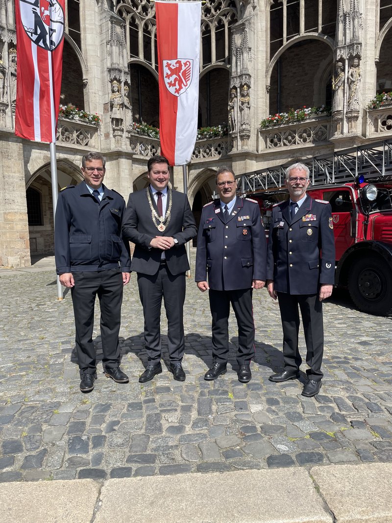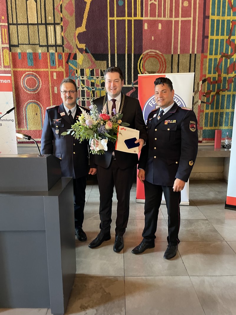 Eine Überraschung hielt der Feuerwehrpräsident noch für den Oberbürgermeister bereit. Für seine Verdienste um das Feuerwehr- und Feuerwehrverbandswesen wurde Dr. Thorsten Kornblum durch Olaf Kapke mit der Niedersächsischen Feuerwehr-Ehrenmedaille ausgezeichnet.