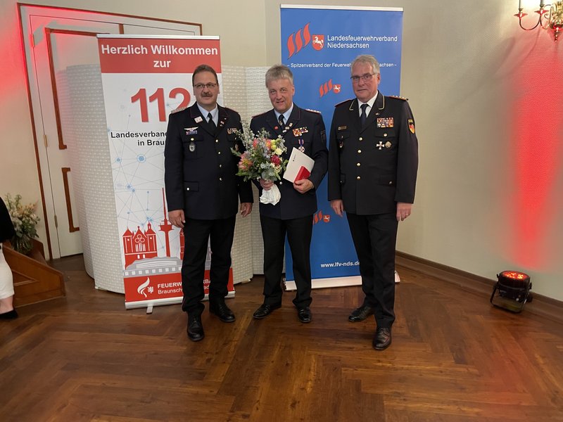Überrascht wurde an diesem Abend das Vorstandsmitglied des LFV-NDS, Gunnar Range, durch den LFV-Präsidenten Olaf Kapke. Der Feuerwehrpräsident ehrte ihn für seine Verdienste im Feuerwehrverbandswesen mit der Ehrennadel des Landesfeuerwehrverbandes Niedersachsen in Silber.