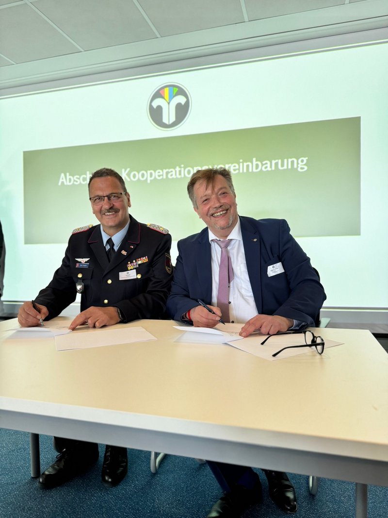 Feuerwehrpräsident Olaf Kapke betonte nochmals: „Unsere Organisationen verbindet ein gemeinsames Ziel: der Schutz von Menschenleben. Durch die Kooperation schaffen wir neue Synergien für Prävention, Ausbildung und Nachwuchsarbeit.“