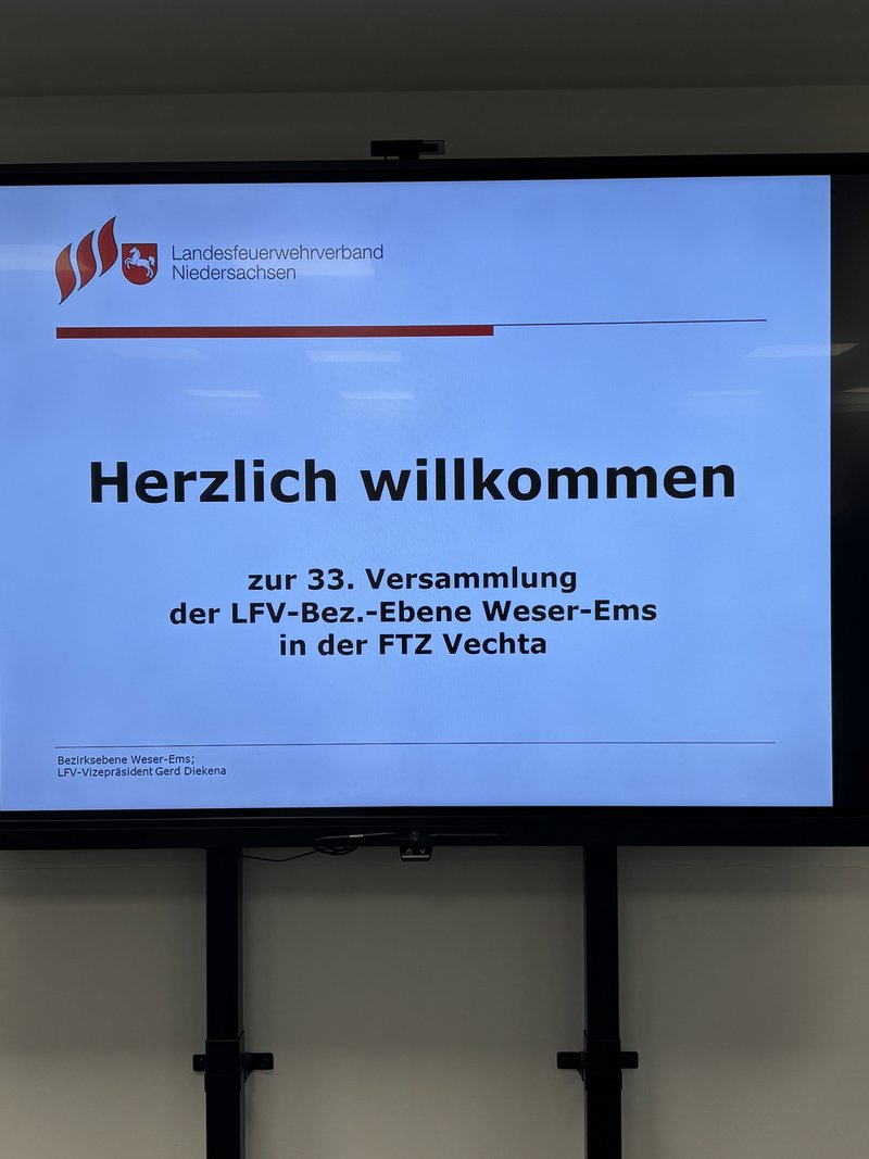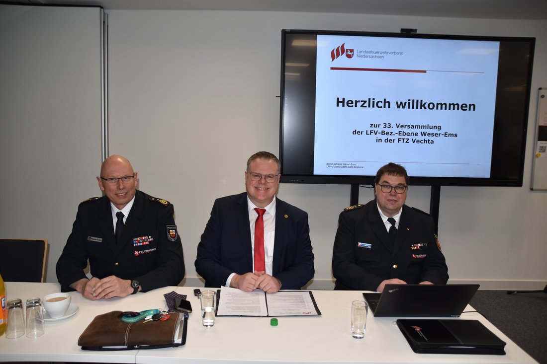 Vechta - In den Räumlichkeiten der Feuerwehrtechnischen Zentrale (FTZ) des Landkreises Vechta fand die 33. Versammlung der Bezirksebene Weser-Ems des Landesfeuerwehrverbandes Niedersachsen (LFV) statt. Um 10.00 Uhr eröffnete LFV-Vizepräsident Gerd Diekena die Versammlung und begrüßte zahlreiche Gäste sowie die anwesenden Kameradinnen und Kameraden aus dem gesamten Bezirk.