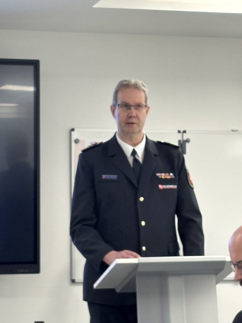 Andreas Wentker berichtete über die Lehrgangs- und Ausbildungsentwicklung an der NLBK mit ca. 65.000 Teilnehmertage. Die aktuelle Planungs- und Zuweisungsstand für 2026 liegt bei 76.000 Teilnehmertagen und die Verteilung sieht folgendermaßen aus: F-Lehrgänge ca. 67%, B-Lehrgänge ca. 22%, Sonderveranstaltungen 13%, Ausfallraten 3 % Bedi Gruppenführer Teil 1 + 2. Bei der Prüfungsstruktur wird mehr auf die Praxis und kompetenzorientierter Prüfungsformate fokussiert. GF 1 + GF 2 Einführung von Selbstkontrollen, zwei praktische Lagen und ergänzendes Fachgespräch.