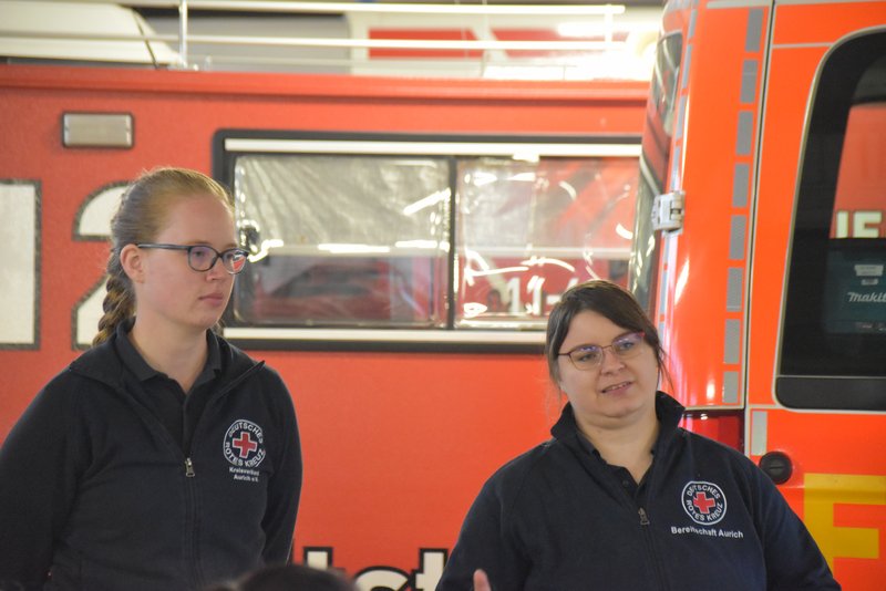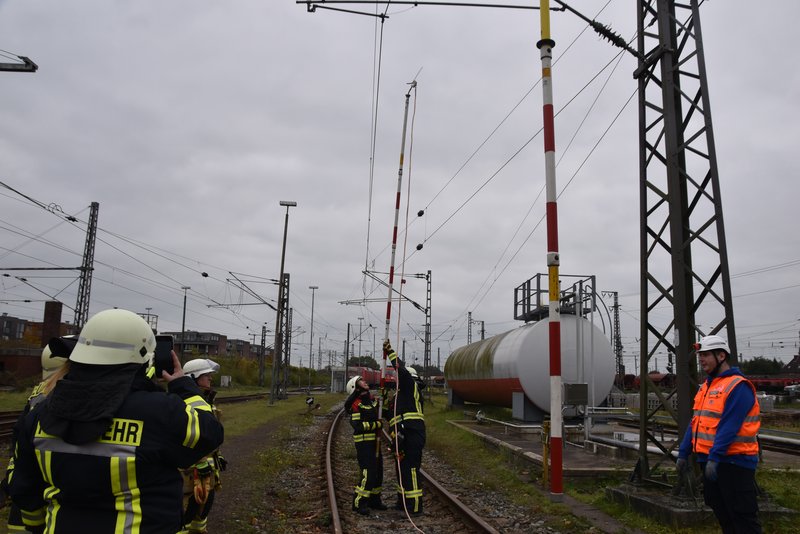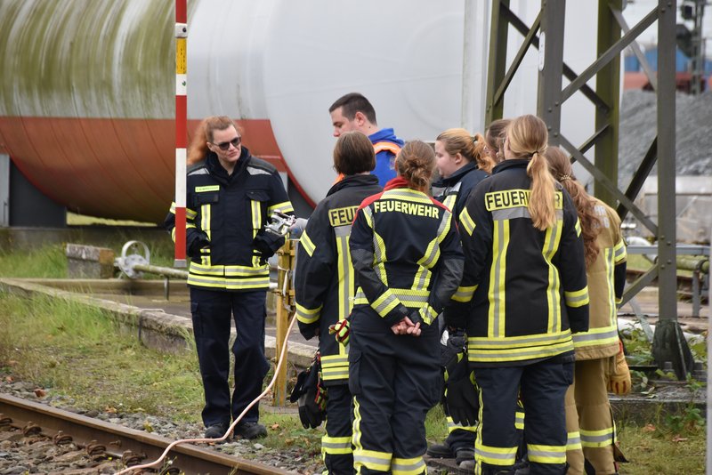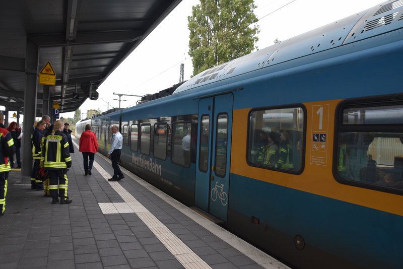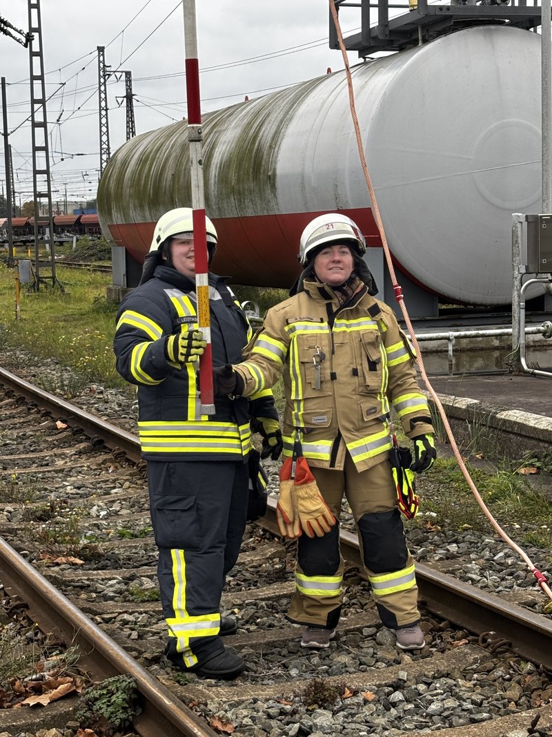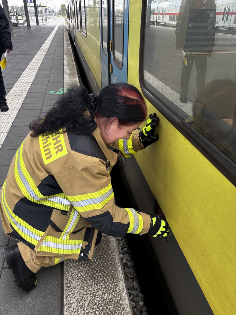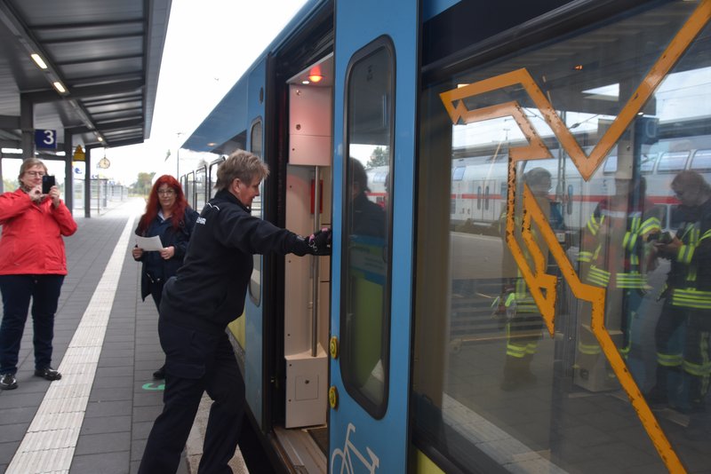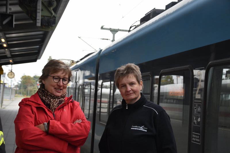 Ein besonders praxisnaher Workshop, der am Emder Bahnhof stattfand. Die Notfallmanager der Deutschen Bahn (Stefan Halm und Marcel Marquardt) erläuterten Gefahren des Bahnbetriebs und erklärte Sicherungsmaßnahmen (bei Arbeiten an den Gleisen oder der Oberleitung werden die Bereiche geerdet, um Restspannung zu beseitigen und Sicherheit zu gewährleisten). Weiter durften die Feuerwehrfrauen das Stellwerk in Emden besichtigen, Herr Halm erklärte den Frauen welche Aufgaben die Mitarbeiter haben und wie ein Stellwerk funktioniert. Im Anschluss wurde ein Übungsszenario an einem Zug der Westfalenbahn durchgeführt, hier wurde gezeigt wie man die Türen von aussen über ein Türnotöffnungssystem öffnet. - Technische Hilfeleistung – Einsatzmöglichkeiten mit verschiedenen Rettungsgeräten