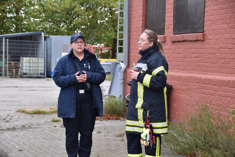 Digitalisierung und moderne Einsatztechnik waren Themen dieses Workshops. Die Teilnehmerinnen erhielten einen Überblick über die landesweit eingesetzte Stabssoftware CommandX, den Aufbau und die Kommunikation im Einsatzleitwagen (ELW) sowie die Drohnenarbeit bei Einsatzlagen. An mehreren Stationen wurde das Erstellen von Lagekarten, die Kommunikation zwischen ELW und Drohne und die Auswertung von Luftbildern trainiert. - Absturzsicherung