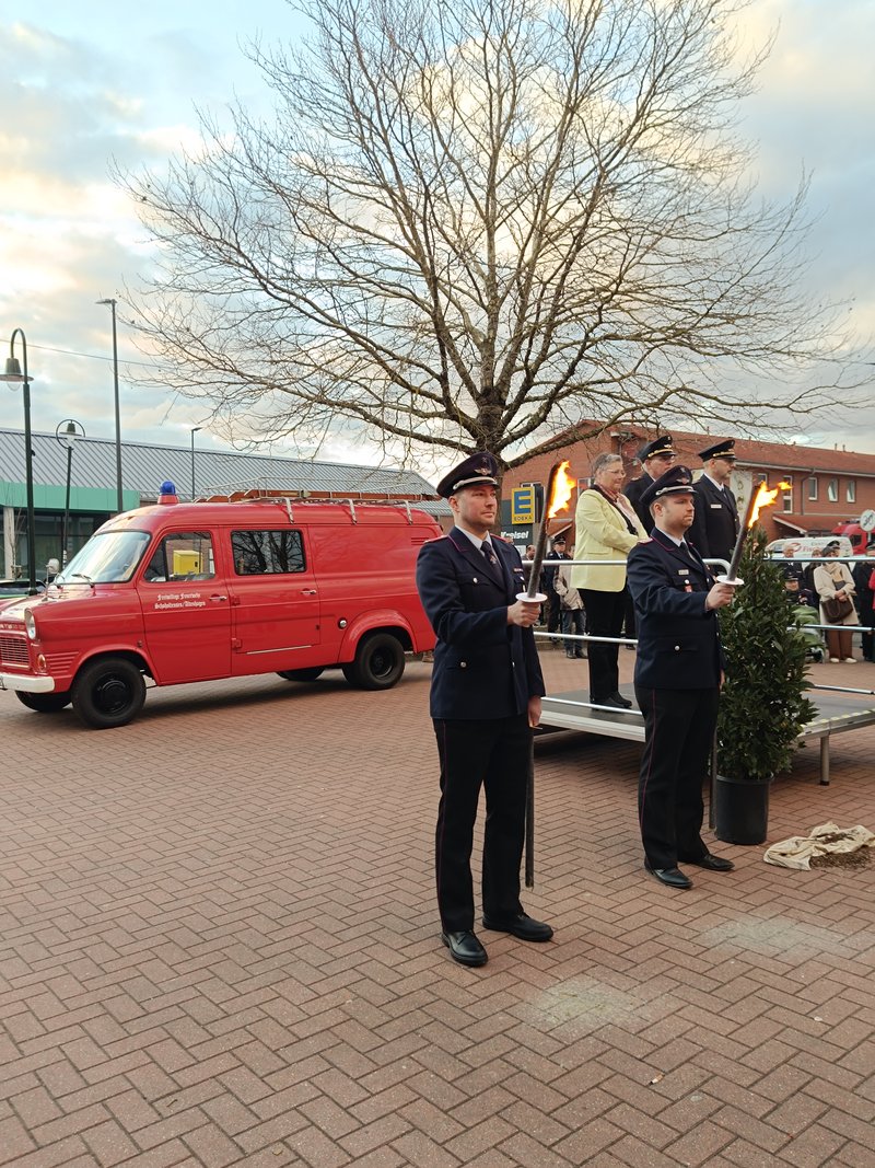 Lauenau (Lk Schaumburg). Standesgemäß wurde Kreisbrandmeister Klaus-Peter Grote am Samstag (28.02.2026) von einem Feuerwehrfahrzeug zu Hause abgeholt. In Begleitung der vier Kradmelder ging es für den Bergkirchener mit seiner Frau nach Lauenau.