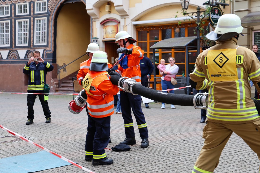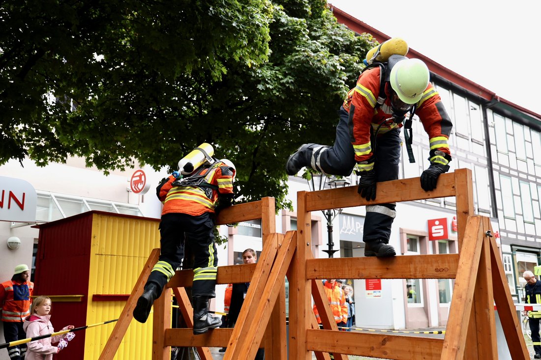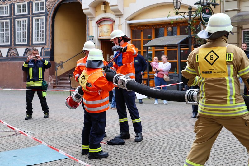 Einbeck. LK Northeim: Schon am frühen Sonntagmorgen herrschte Hochbetrieb in der Einbecker Innenstadt: 42 Wettbewerbsgruppen der Freiwilligen Feuerwehren aus sieben Landkreisen traten beim Regionalentscheid gegeneinander an. Unterstützt wurden die Wettkämpfer von 34 Wertungsrichtern und zahlreichen Helferinnen und Helfern, die sich seit Samstag um Aufbau, Verpflegung, Auswertung und Organisation kümmerten.