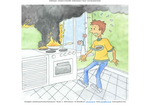 - Bildergeschichte - Verhalten im Brandfall - MehrfamilienhausDie Bildergeschichte zeigt das richtige Verhalten bei einem Brand in einem Mehrfamilienhaus. Es brennt in der Küche.