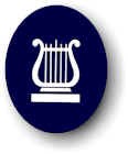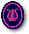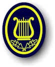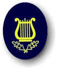 - Die Grundform des Funktionsabzeichens besteht aus einem mit einer Lyra bestickten Oval aus blauem Abzeichentuch in den Abmessungen von etwa 5,5 cm (Breite) x 6,5 cm (Höhe).